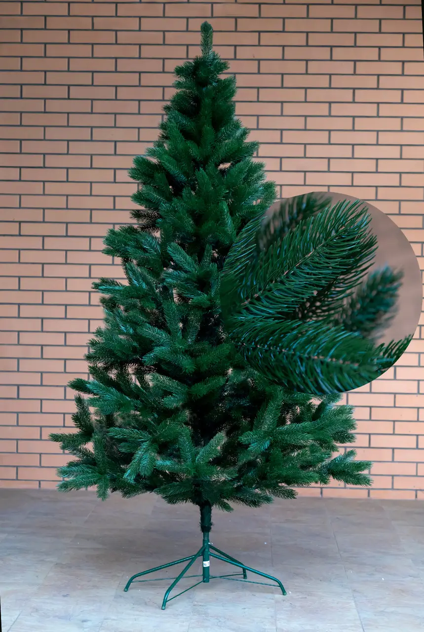 Виглядає як натуральна ялинка завдяки великій кількості індивідуально відлитих гілочок. А все тому, що кожна гілочка відливається в спеціальній формі. Це забезпечує ялинці досить натуральний і урочистий вигляд. Основи гілок декоровані коричневими елементами, щоб надати нашій ялинці максимальну схожість з лісовою. Самі гілочки пружні, не зминаються, їх приємно торкатися. Лита ялинка 1.5 м. основа метал. Ялинка лита 1.5 м. стовбур метал.
