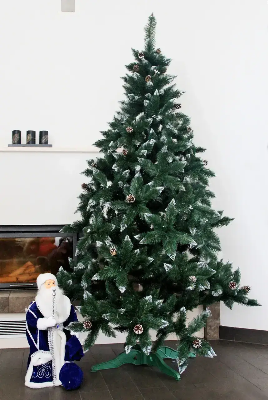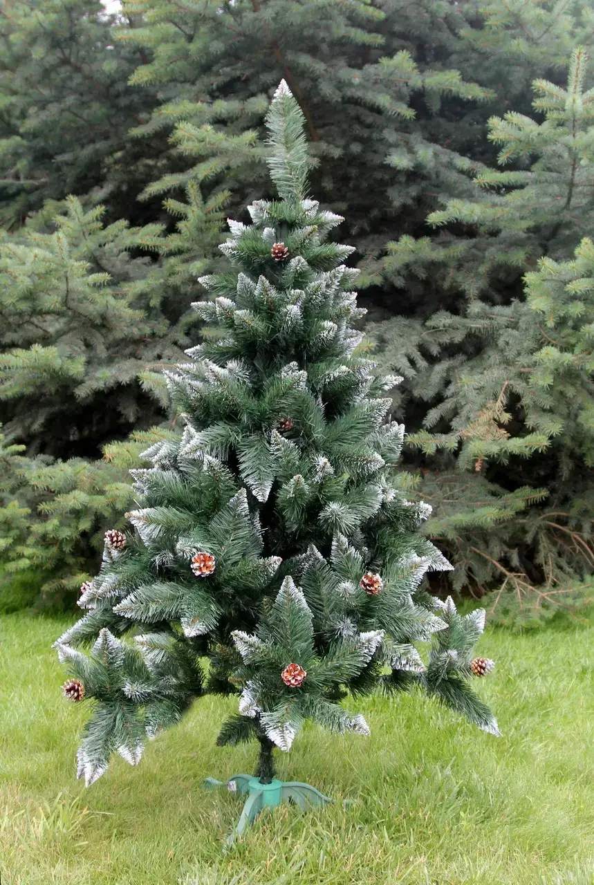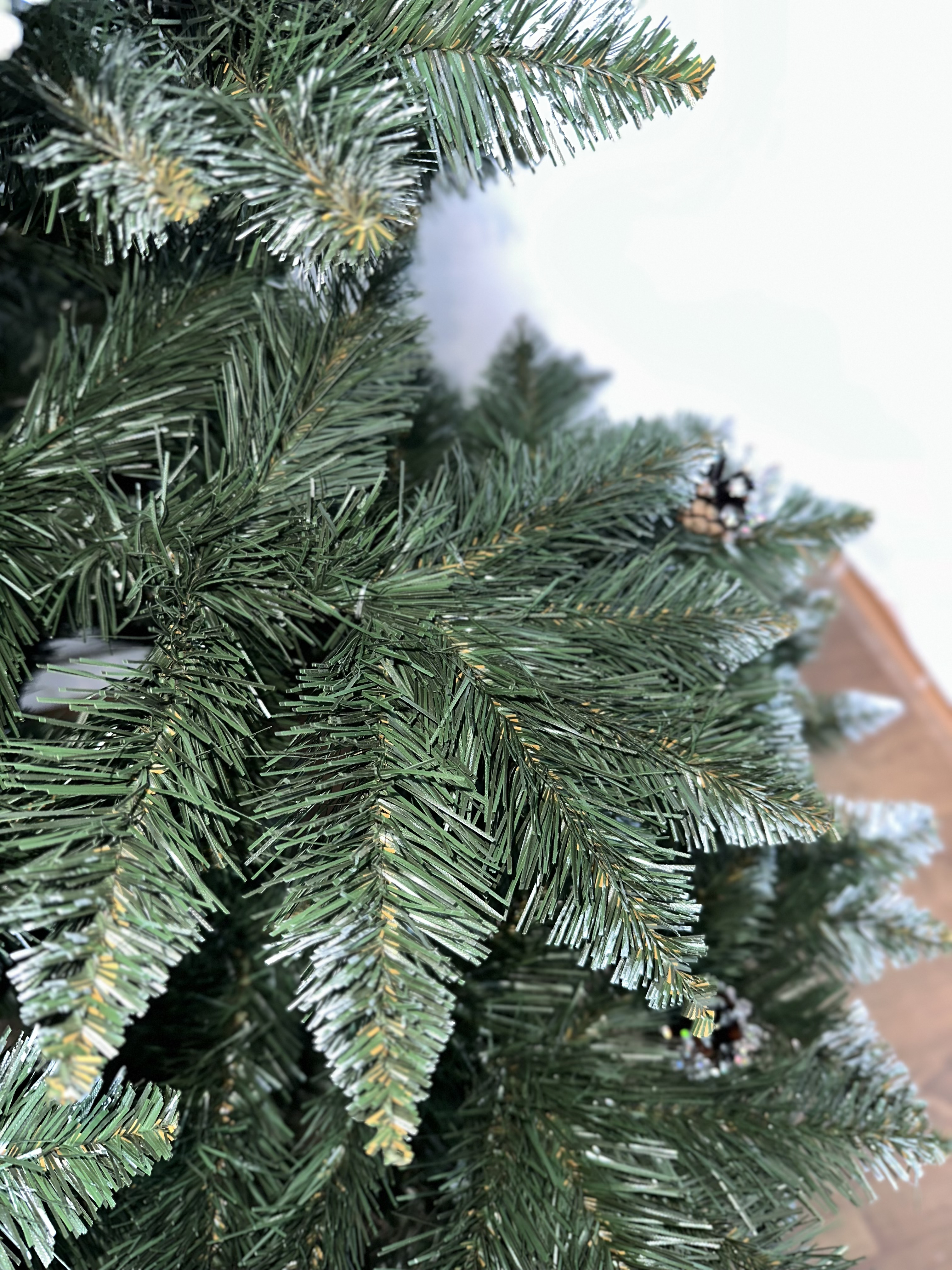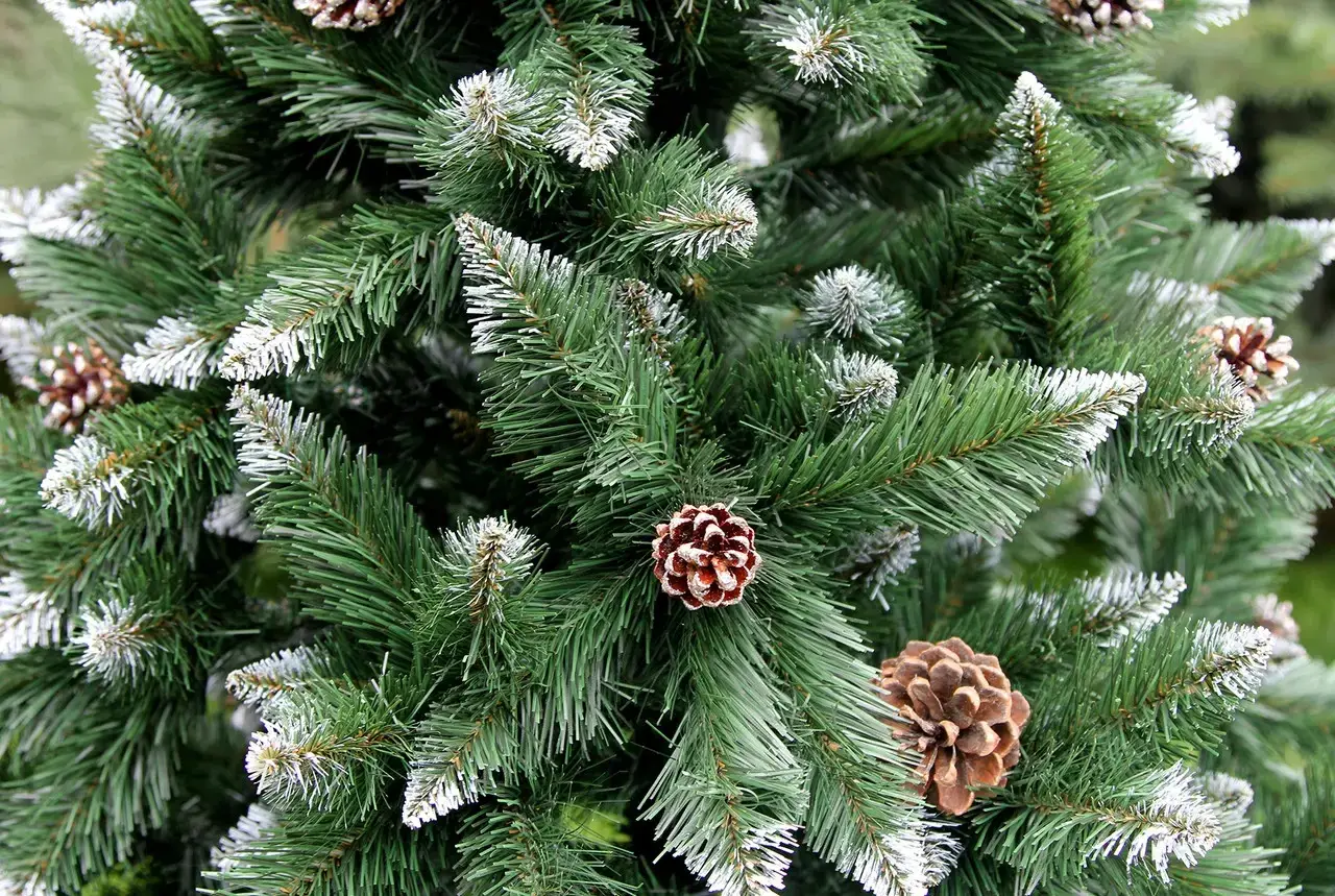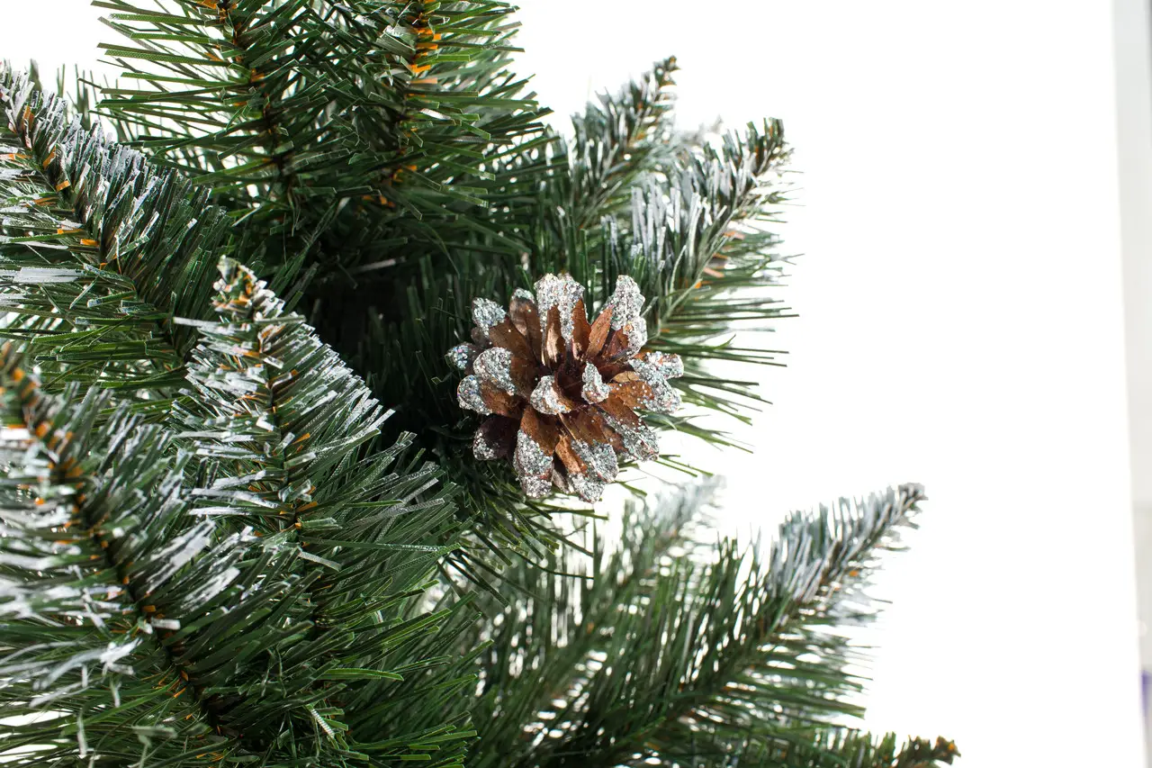 ШТУЧНА ЯЛИНКА «ЕЛІТНА» З БЛИСКУЧИМИ ШИШКАМИ ТА БІЛИМИ КІНЧИКАМИ